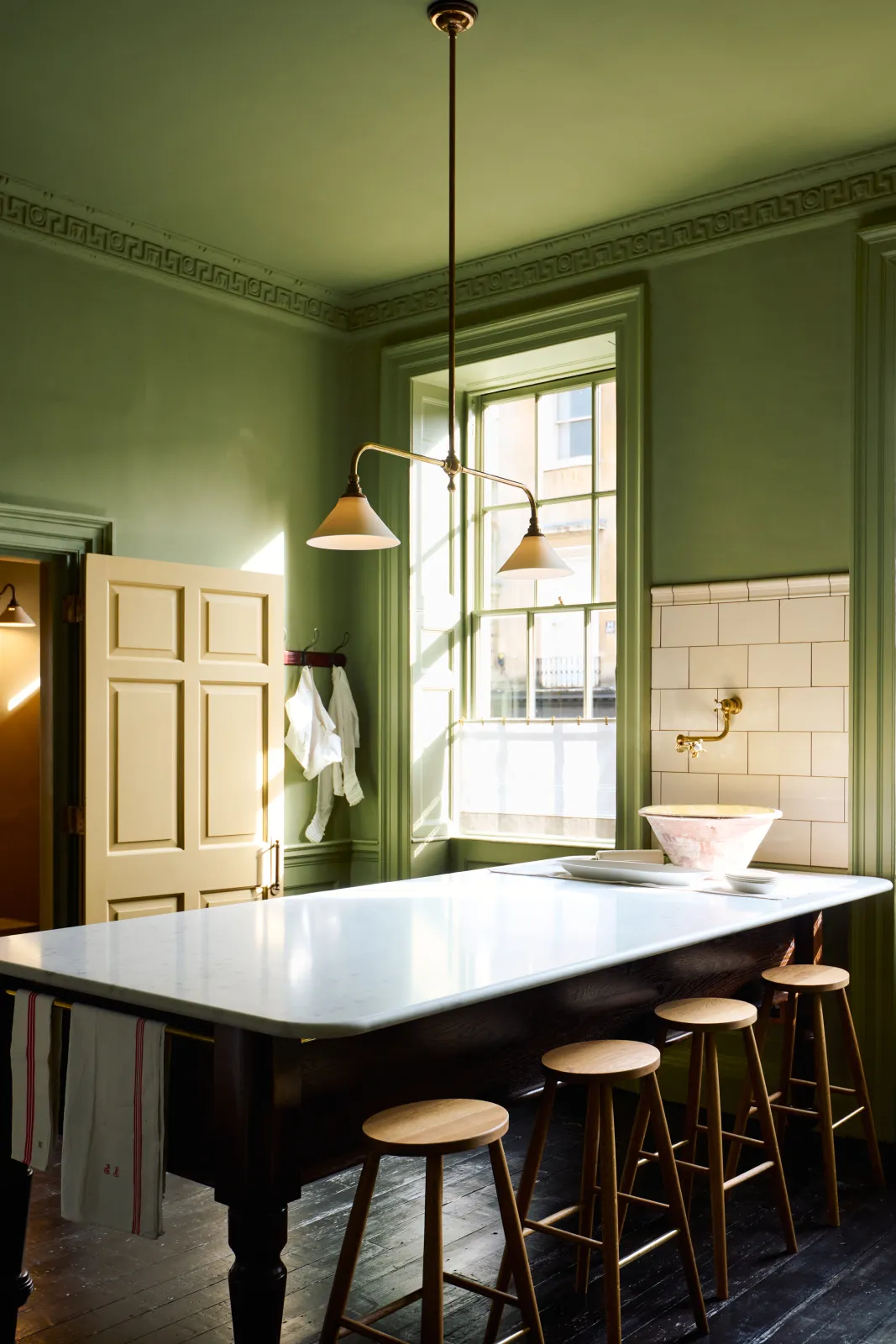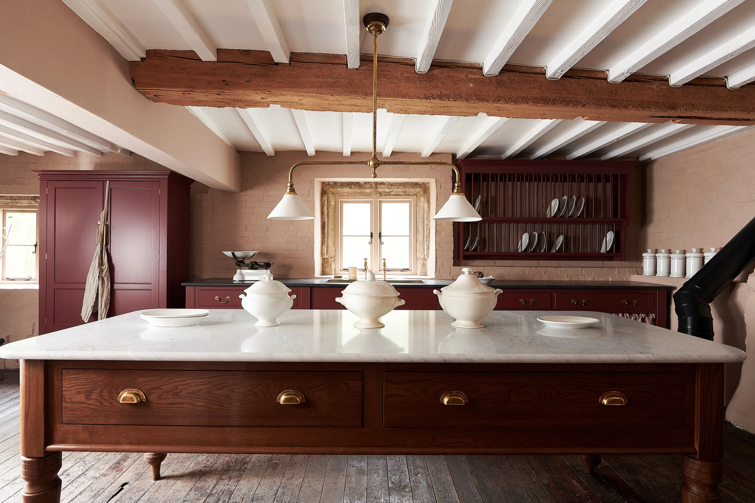 A prep table that has been inspired by the ‘under the stairs’ kitchens at Lanhydrock House in Cornwall. This National Trust property is one of our favourites because the kitchens are all so inspiring and relevant today. It’s hard to better the whole concept of these kitchens, their austere beauty and their supreme functionality and most importantly, their ability to feel totally current.