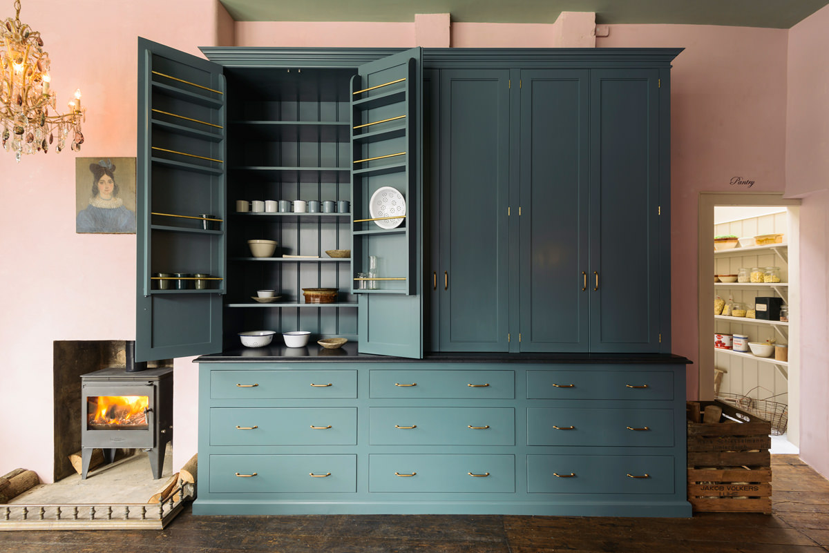 Bespoke cupboards painted in ‘Clerkenwell Blue’
