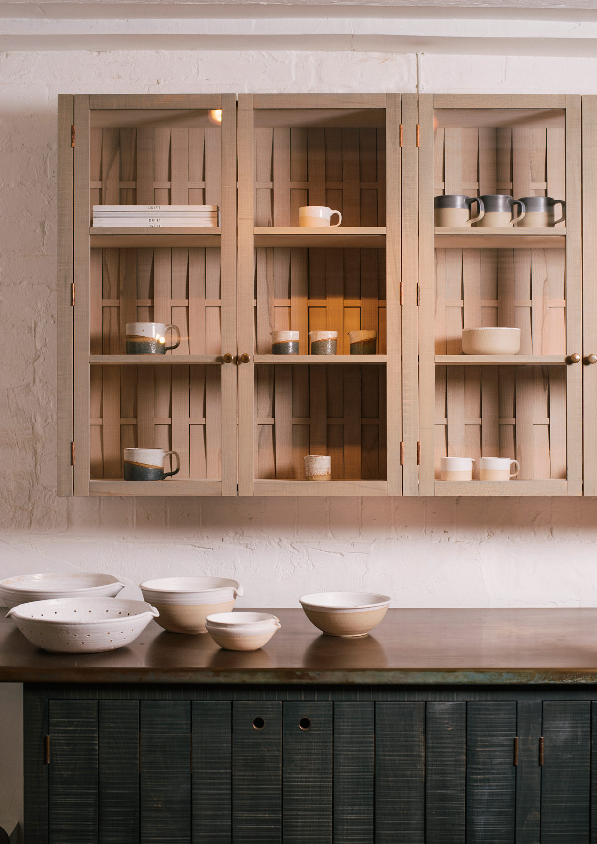 They haven’t told me too much yet, but I do know that we can expect a charming and refined display of cupboards featuring all the classic bits that make this range so special and so unique. The display will include a lovely long run of base cabinets with textured rough sawn fronts and copper finger holes, a big prep table standing on wonderfully elegant and slim legs, a little seating area where we can sit and chat and chill, and of course a couple of cupboards with beautifully delicate woven back panels, a detail that has become synonymous with this range.