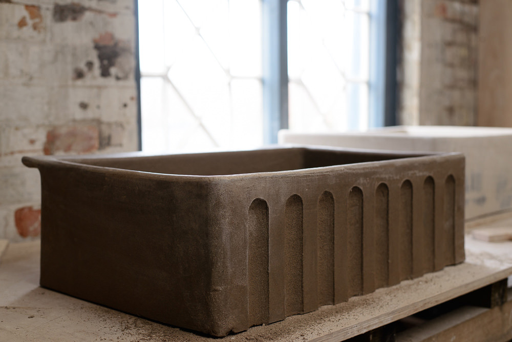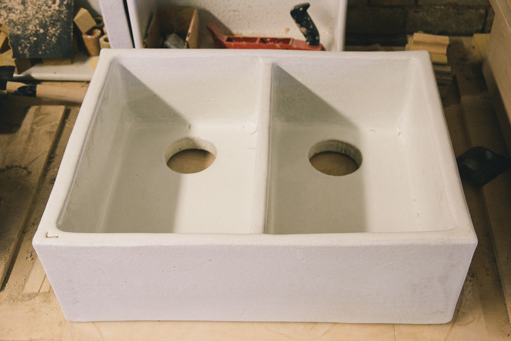 So for me it isn’t a wall of shame, it’s a voyage of discovery, and with every rock turned over I understand that shady little world a bit more. Clay is the Gorgon of all of nature’s materials, and firing it in a gnarly old kiln off ebay is like being asked to cut off Medusa’s head with a rusty shield and a spatula. But we are on a mission and we are really nearly there. I think it’s about 12 or maybe 14 sinks down the road and here we are with a sink that would hold water and touch the worktop in at least 3 places. One thing’s for sure, when we finally announce the deVOL sink is for sale, you can guarantee you’ll be getting a sink which has plenty of character.