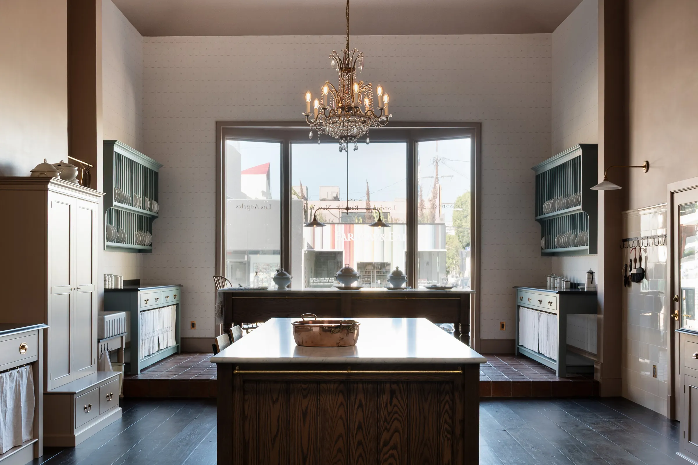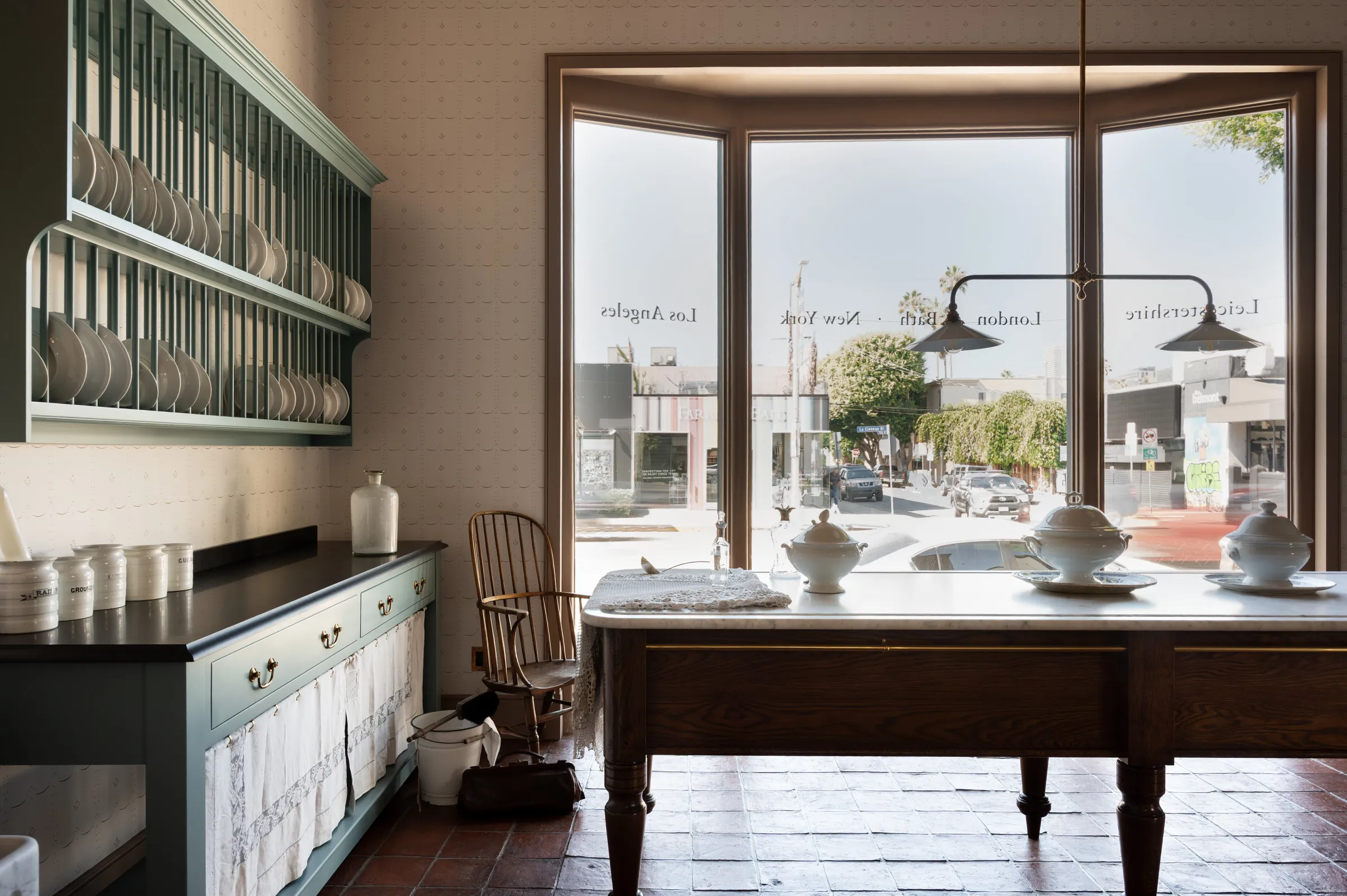 Shipped across the ocean, these English cupboards instantly looked at home in the never-ending sunshine that pours through our showroom window. Leicestershire, London, Bath, New York and now Los Angeles are very proudly written in gold on the glass.