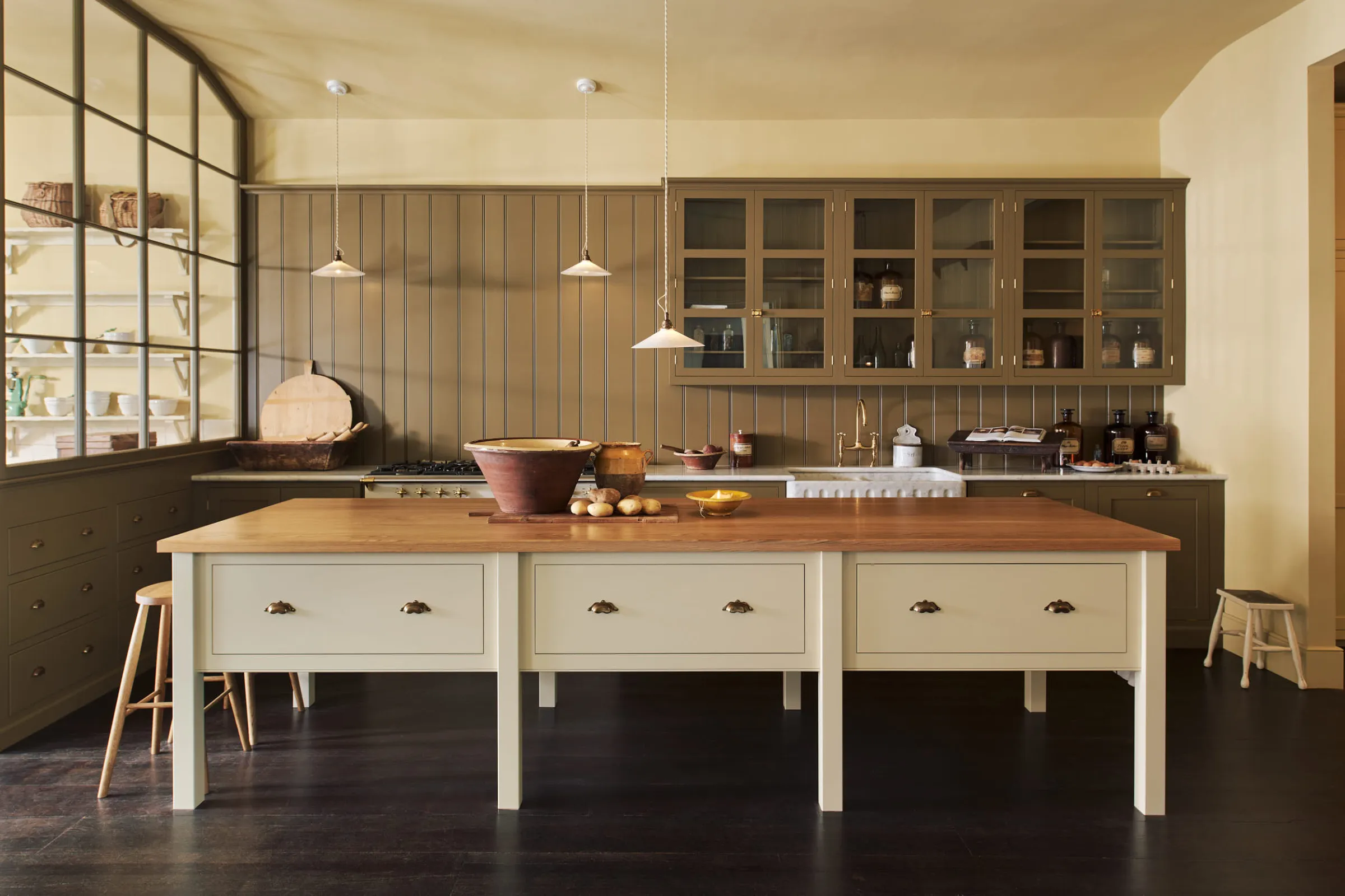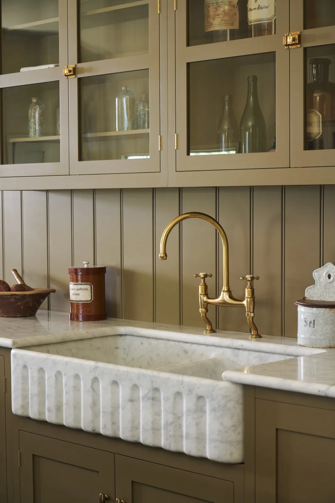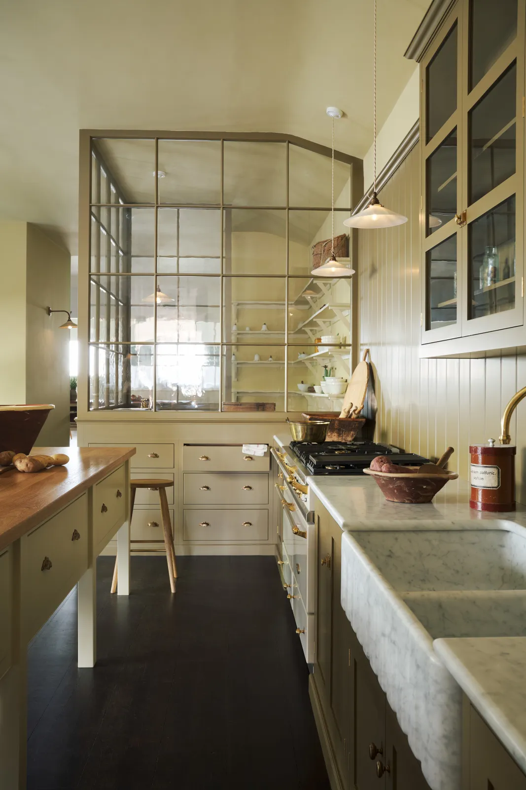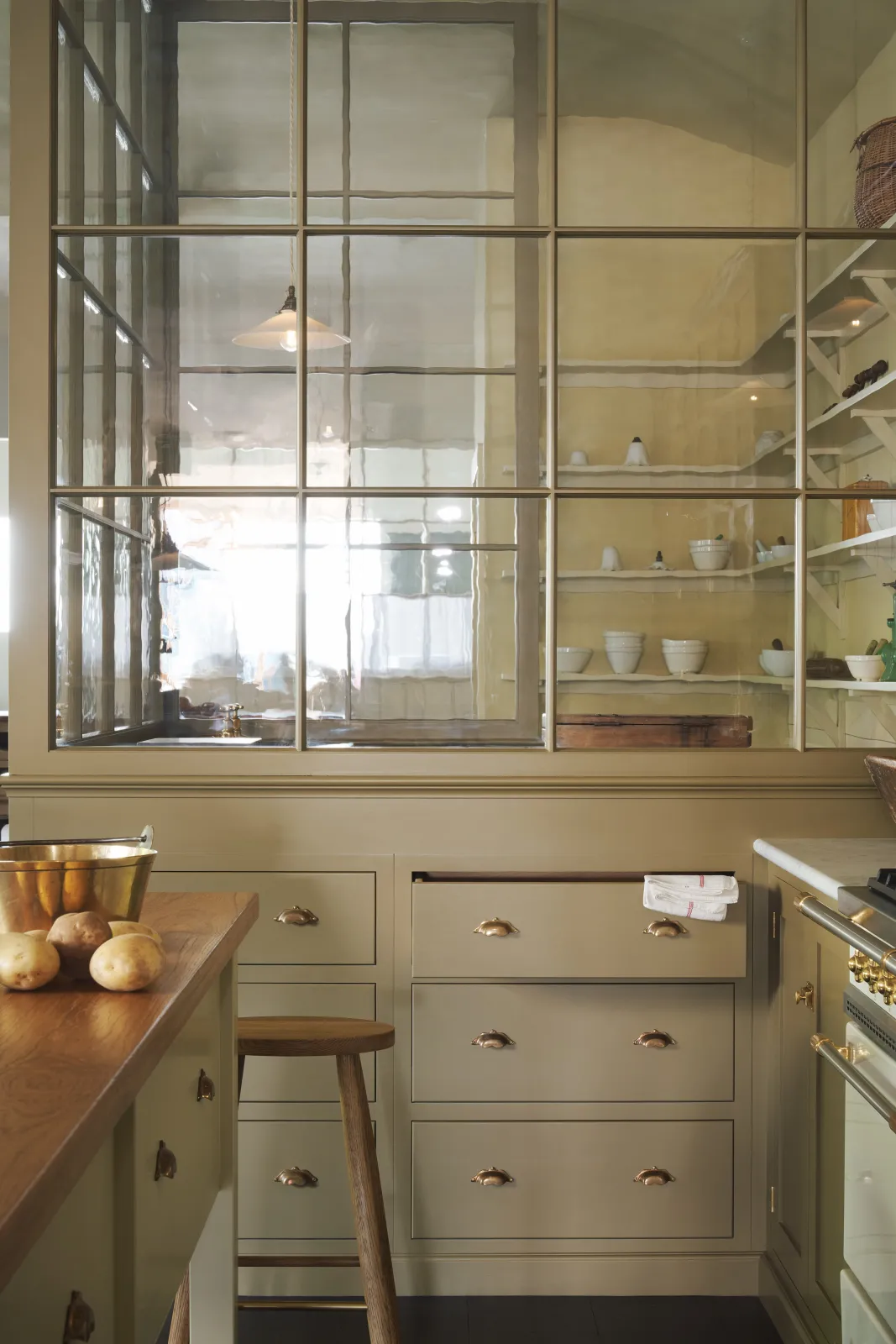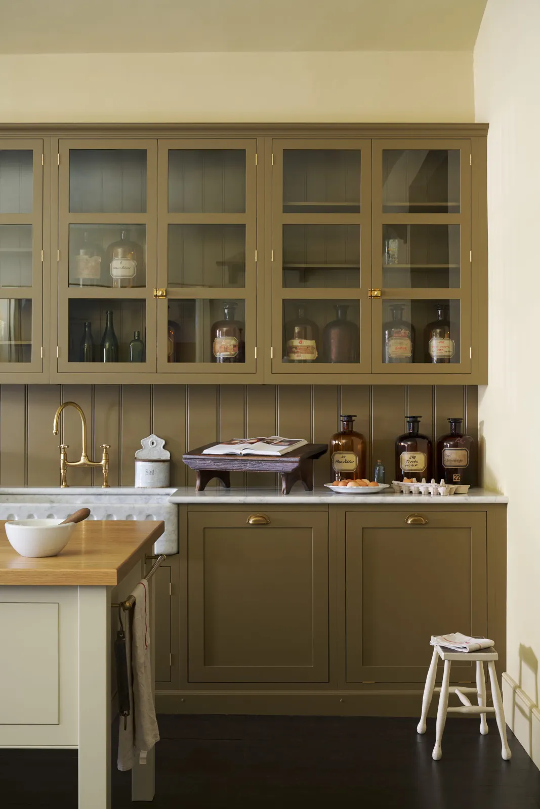 The colour palette is reminiscent of big old London houses (particularly in Spitalfields, East London) where the kitchen was a working space and needed to be practical. So muddy, greeny browns and dark wooden floors, give a sombre and sturdy feel to the furniture and panelling. There is something quite alluring about these kinds of colours, they feel almost as if the room chose them rather than a person, which makes it all feel very authentic.