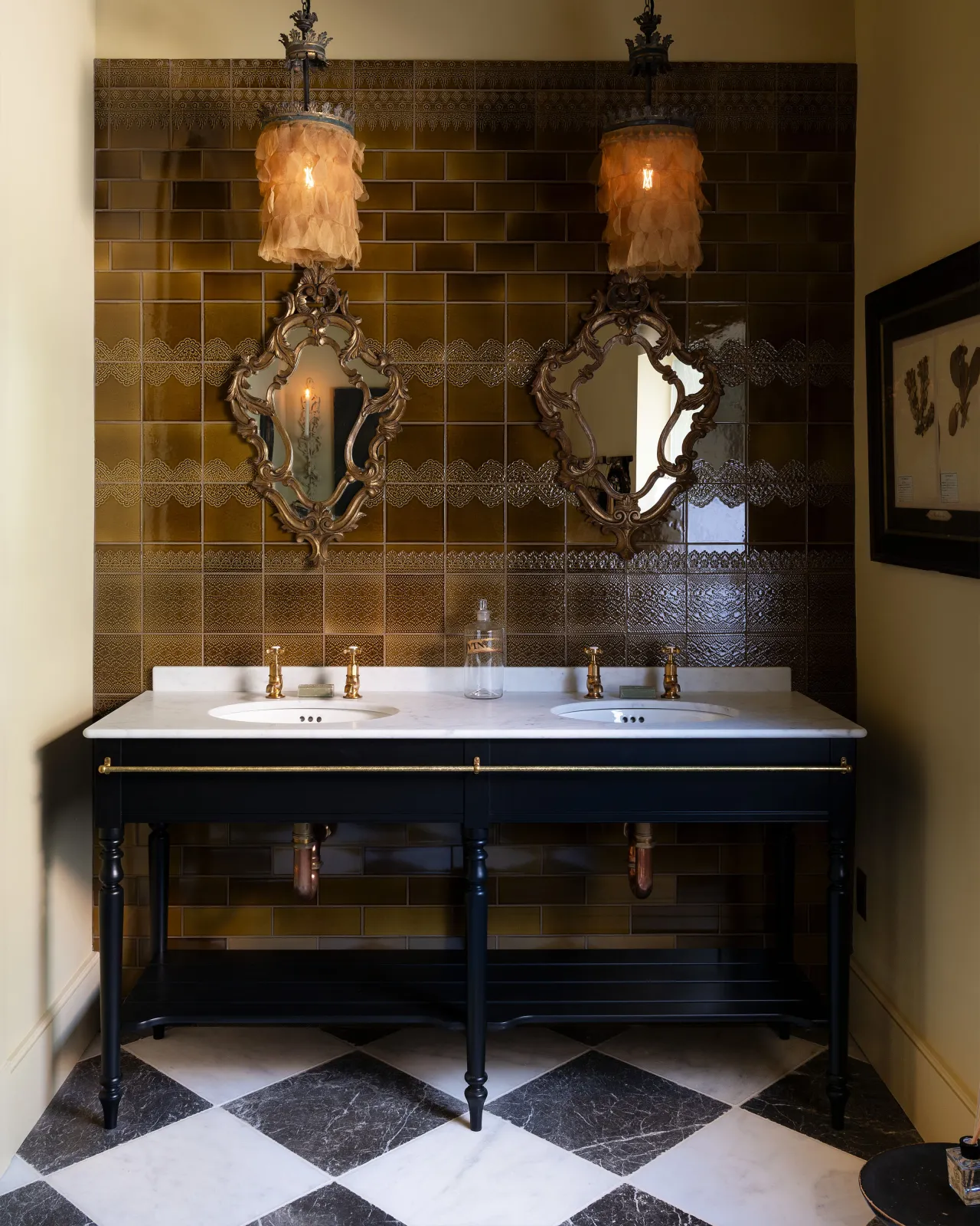 Our love of vintage and old things led us to design a range of tiles with Hannah, one of our deVOL ceramicists. Finding vintage tiles is time-consuming and often very challenging, so we hope this range will give you the opportunity to decorate your home in a very authentic and unique way, without compromise and frustration. We imagine these tiles in so many situations, delicate rose colours, totally authentic sepia tones and the aged look of the teal all conjure up wonderfully eclectic interiors.