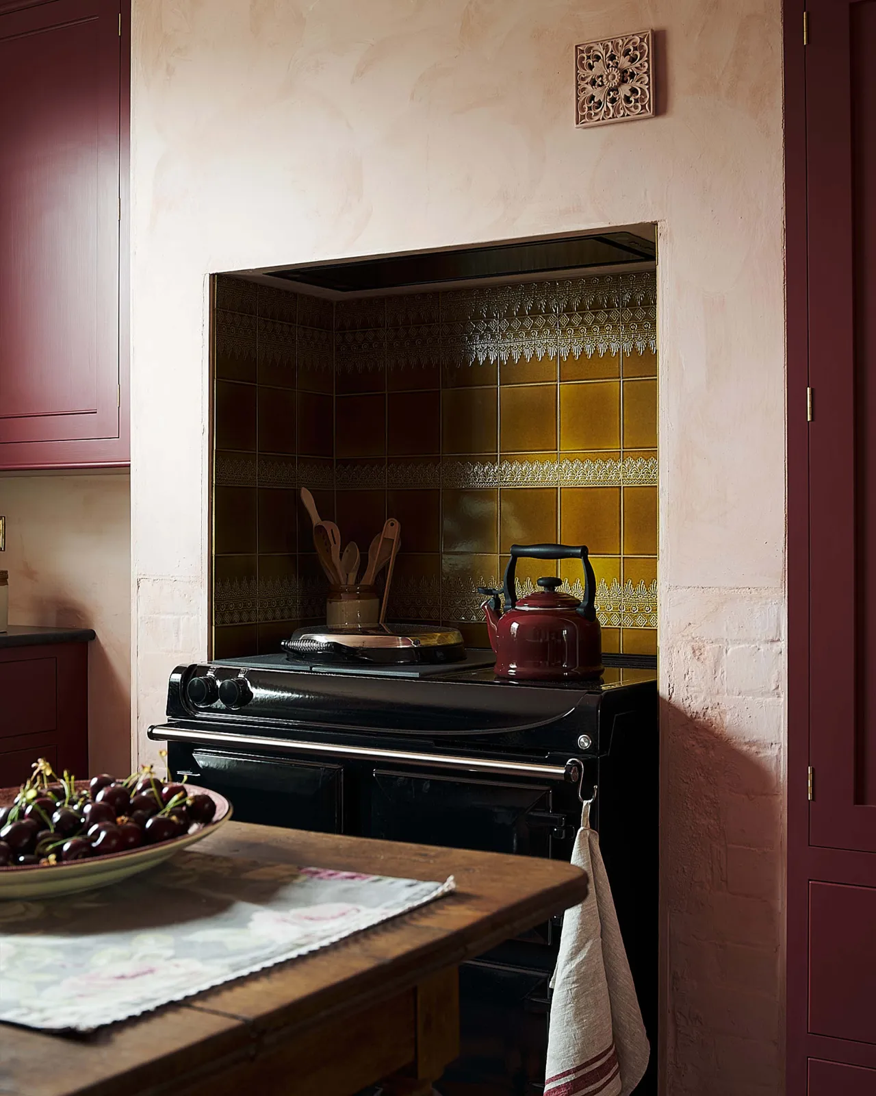 Getting the colour and look right was really important and Hannah has worked tirelessly to perfect a range of glazes that give these tiles a beautiful aged and weathered feel in three colours: a warm rusty sepia, a vintage teal and a delicate rose pink. You might often find these types of Victorian tiles in London tube stations, pubs, as well as porches and fire surrounds; the decorative embossed trim that we have incorporated into our tiles is so reminiscent of the ornate style of this era. We have included both plain and decorative tiles to create the same vintage look and we can’t wait to see what they look like in our customers’ homes.